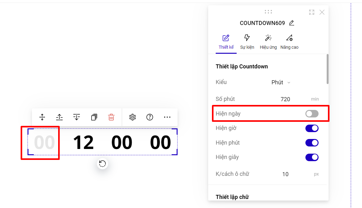 Bước 3: Cài đặt thiết kế cho đồng hồ đếm ngược.