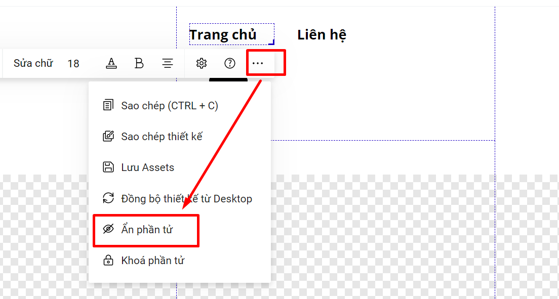 Bước 3: Thiết lập liên kết các tiêu đề menu với section có nội dung tương ứng hoặc trang khác: (tham khảo thêm hướng dẫn sự kiện chuyển sectionsự kiện mở liên kếtarrow-up-right)