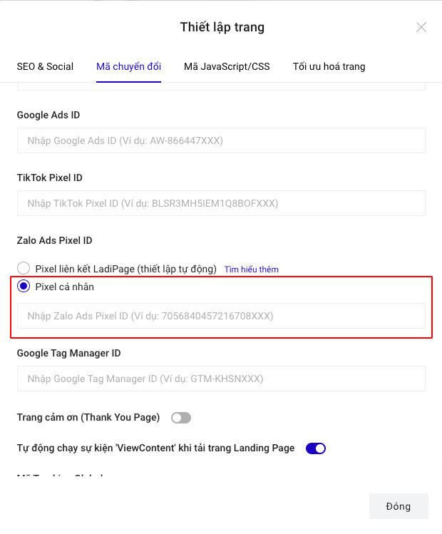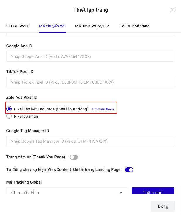 Thiết lập Zalo Ads Pixel trên LadiPage