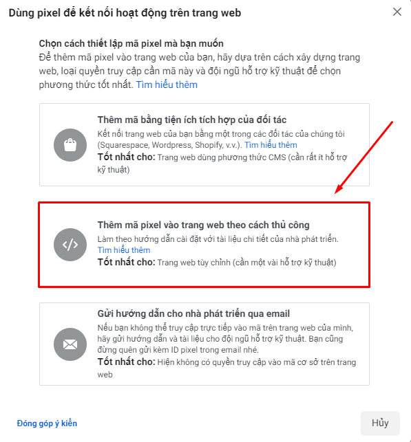 Để cài đặt Facebook Pixel bạn làm theo các bước sau đây: