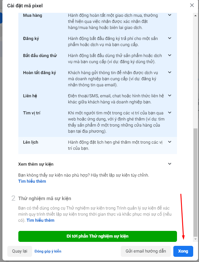 Như vậy là bạn đã hoàn thành xong toàn bộ quy trình cài đặt Facebook Pixel để theo dõi chuyển đổi.