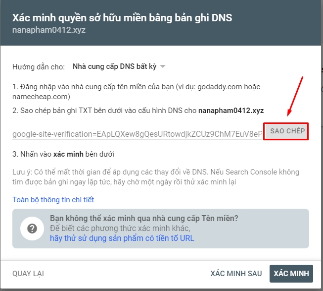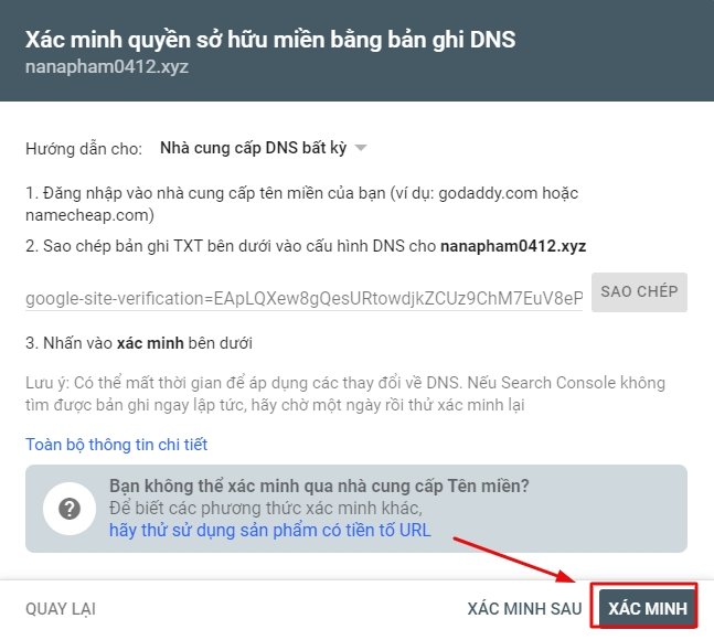 4. Xác minh quyền sở hữu tên miền với Google Search Console