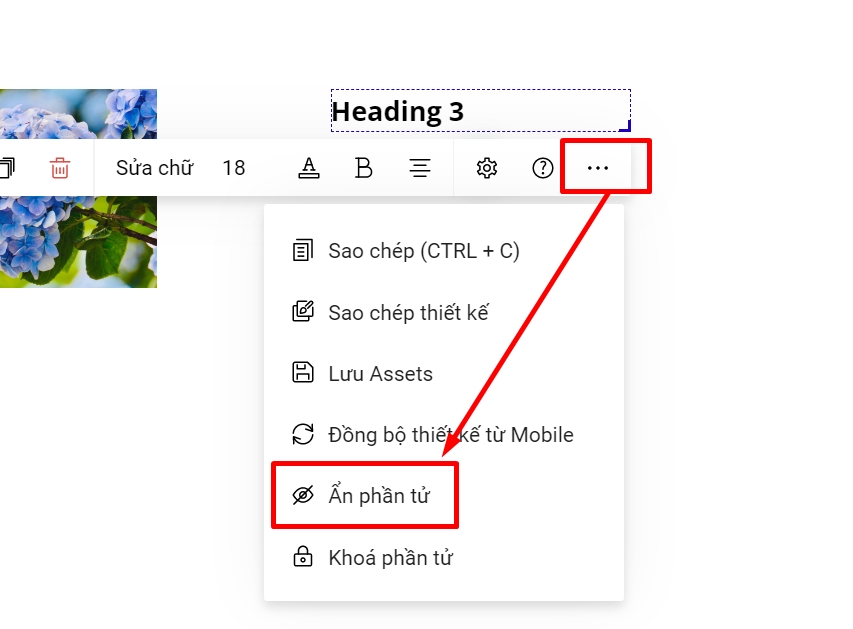 Cách 1: Chọn Ẩn phần tử trên thanh thiết kế nhanh.