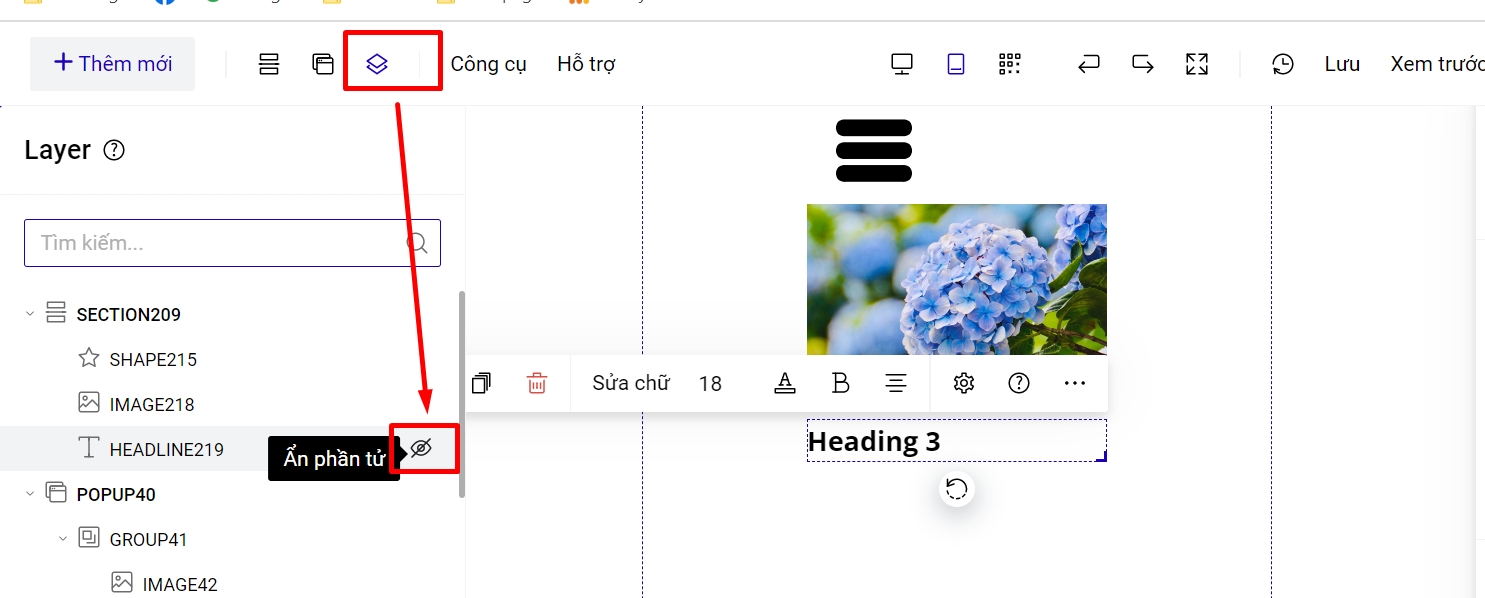 Ẩn phần tử trên bản desktop/mobile không đồng thời ẩn trên giao diện chỉnh sửa còn lại.