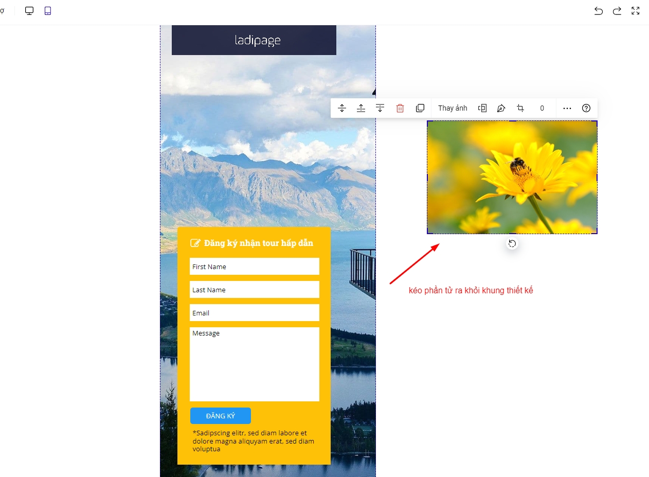 Đối với bản mobile, bạn có thể kéo phần tử ra khỏi khung thiết kế của mobile, phần tử đó cũng sẽ không hiển thị trong trang xuất bản của bạn.