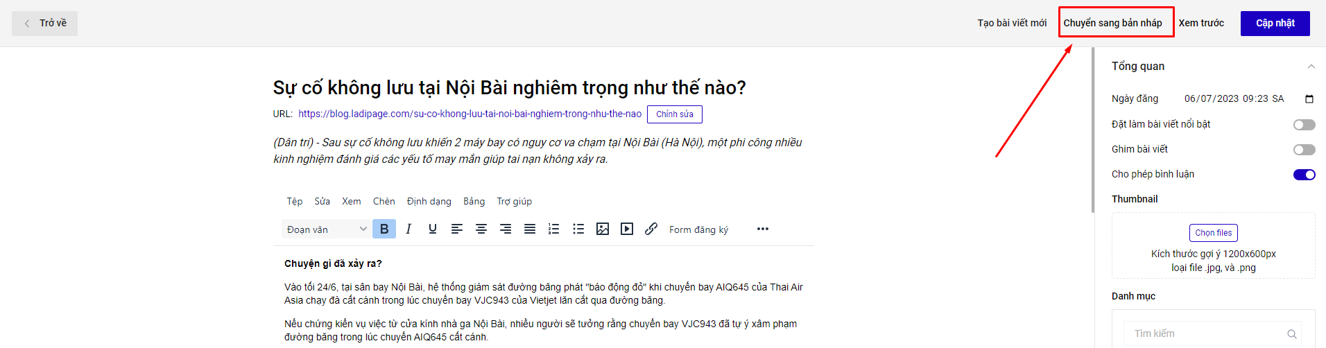Lưu nháp bài viết/ Chuyển sang bản nháp