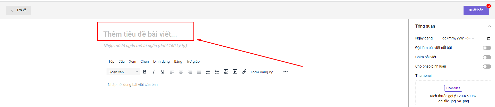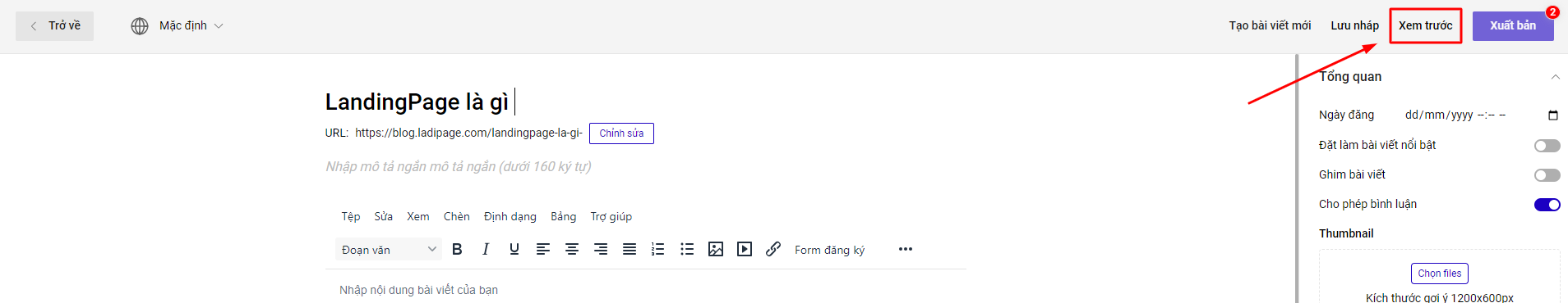Tính năng này hoạt động khi bài viết của bạn ít nhất phải có nội dung ở mục Tiêu đề bài viết