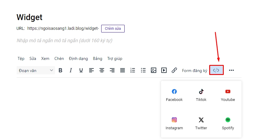 Blog tích hợp hiển thị các nội dung bài viết, hình ảnh... từ các nền tảng mạng xã hội, video : Facebook, Tiktok, Twitter , Instagram, Spotify vào phần nội dung bài viết