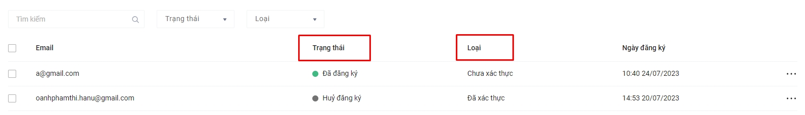 Điều kiện để người đăng ký nhận được email thông báo là trạng thái Đã đăng ký và Loại Đã xác thực