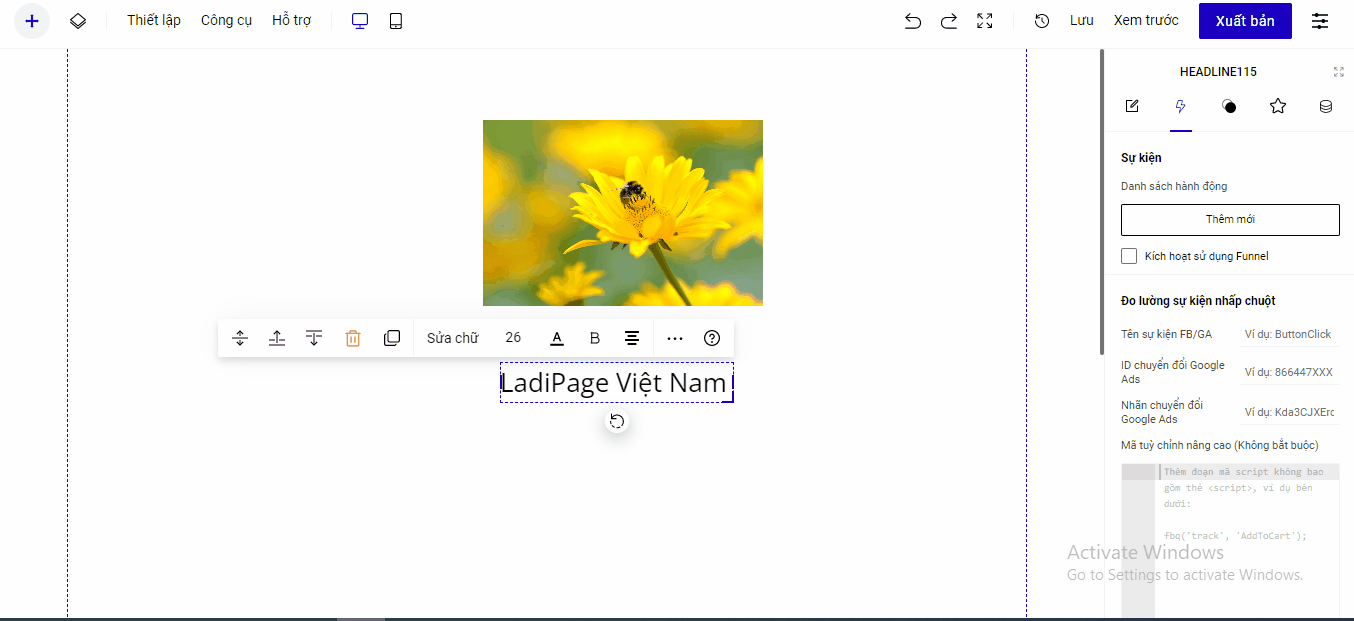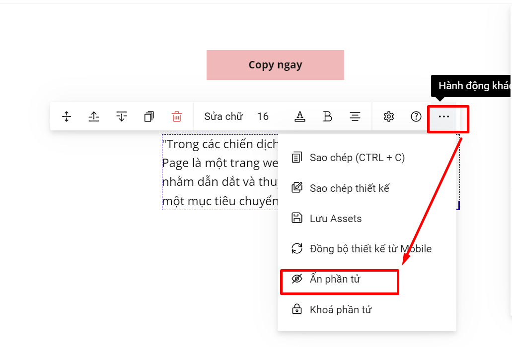 Nếu bạn không muốn hiển thị nội dung copy trên landing page, bạn có thể ẩn nội dung đó.
