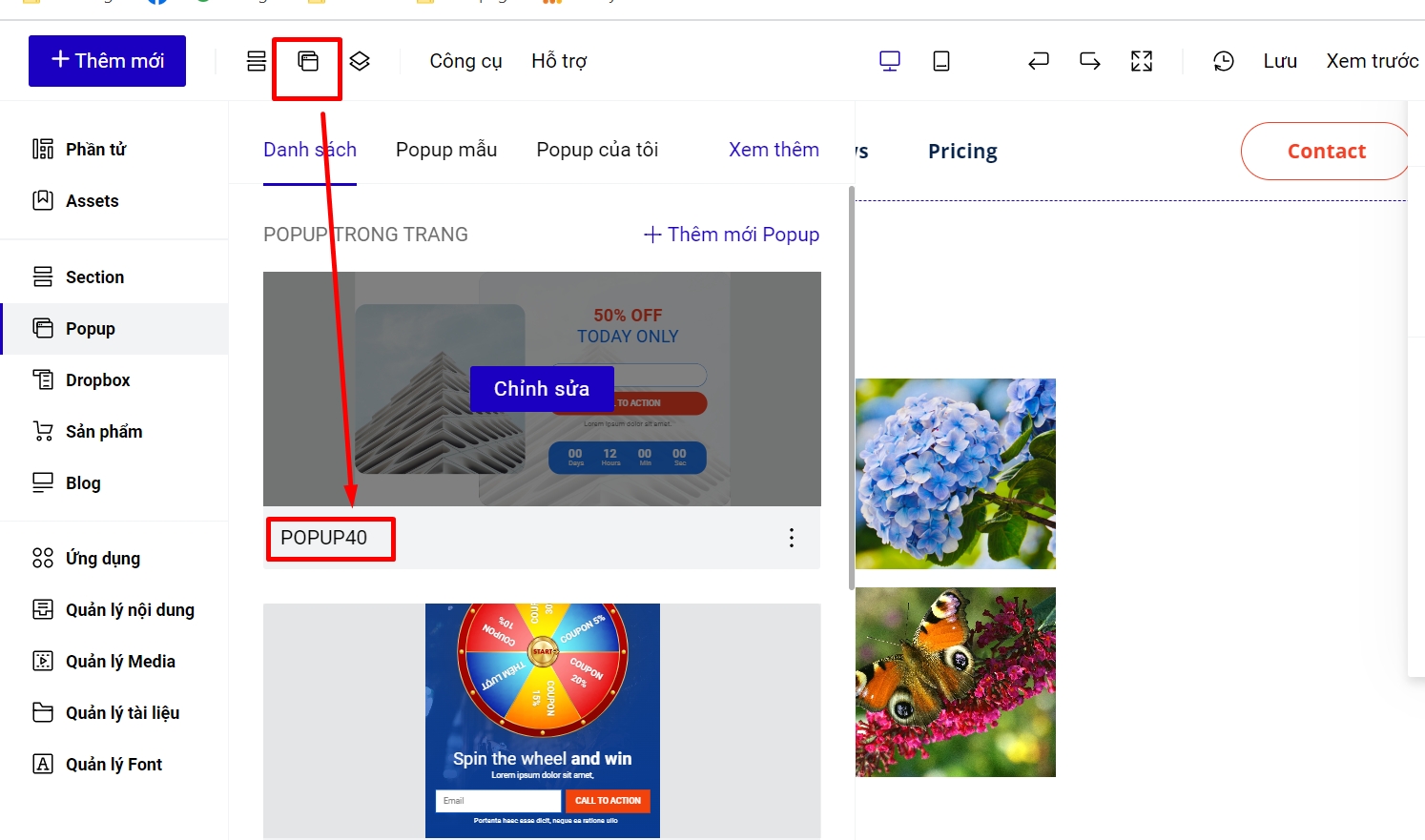 Các bước thực hiện như sau: Bước 1: Kiểm tra ID Popup cần liên kết tại mục Popup.