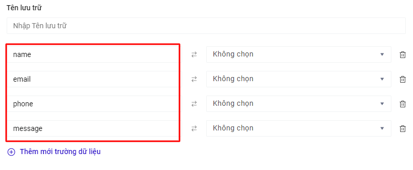 Mỗi trường sẽ tương ứng với 1 TÊN LẤY DỮ LIỆU (như ảnh mô tả )