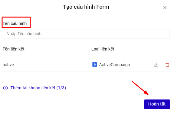 Nhập Tên cấu hình để lưu lại cấu hình form vừa tạo và bấm nút Hoàn tất