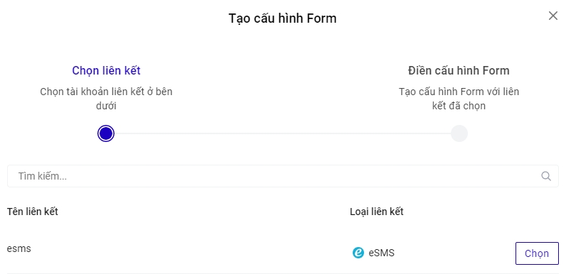 Truy cập trang builder.ladipage.com, chọn menu Landing Pages -> Cấu hình form-> Tạo cấu hình form -> Form data -> Tạo tài khoản liên kết .Sau đó lựa chọn Loại tài khoản là eSMS