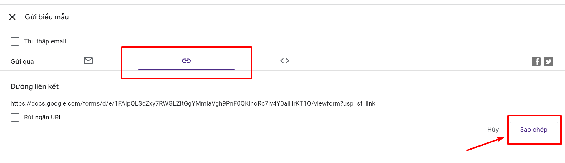 • Lấy Link Google Form để tạo tài khoản liên kết tại LadiPage: Bạn vào phần Gửi --> sao chép đường dẫn của Google Form.