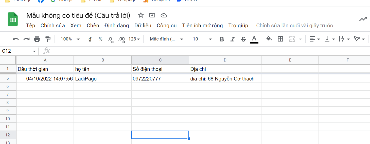 Bên tay trái là các trường thông tin bạn đã tạo trên form ở landing page, bạn cần lấy Tên Lấy Dữ Liệu của các trường của LadiPage như bên dưới: