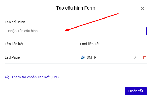 Nhập Tên cấu hình để lưu lại cấu hình form vừa tạo và bấm nút Hoàn tất.
