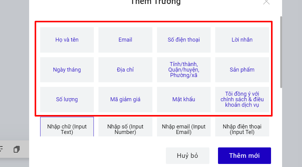 Một form đăng ký sẽ gồm nhiều trường thông tin, bạn hoàn toàn có thể thêm bớt các trường thông tin này trong thiết lập của form. Khi bắt đầu thêm, form đăng ký mẫu hiện ra với những trường cơ bản, sau đó bạn chọn thêm trường để sử dụng các trường khác bạn muốn.