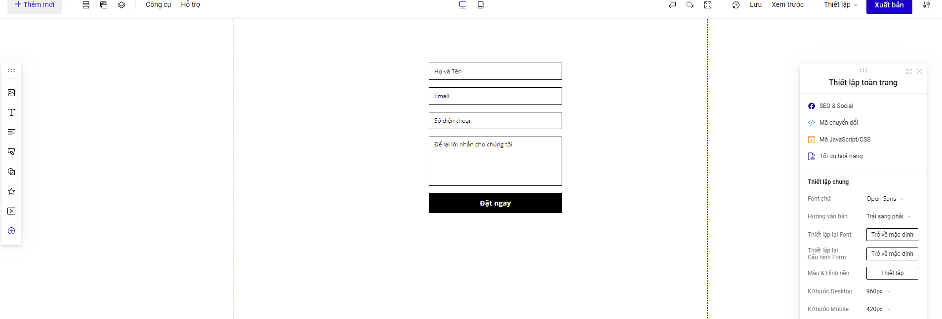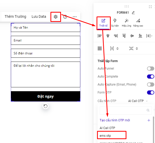 Bước 4: Quay trở lại form trên trang Landing Page, chọn form bạn đang muốn cài đặt , mục thiết lập của form