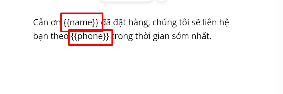 3. Trên trang cảm ơn, bạn thêm mới nội dung text rồi sửa lại theo định dạng {{tenlaydulieu}} (tên lấy dữ liệu chính là các tên biến bạn thao tác ở nội dung số 2). Ví dụ: