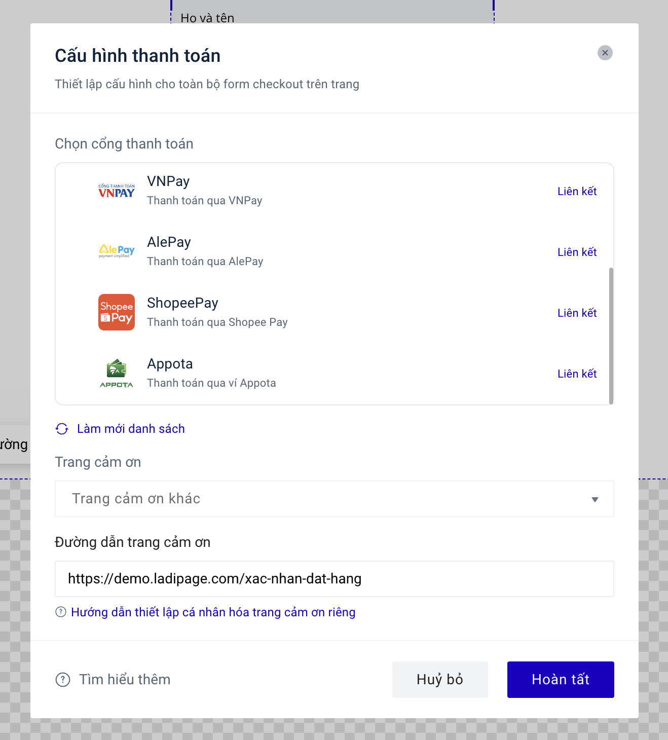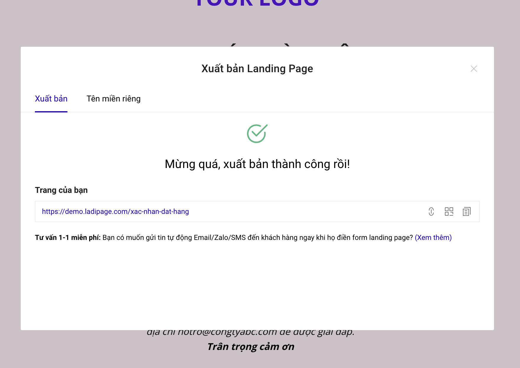 3. Thiết lập cá nhân hóa trang cảm ơn riêng